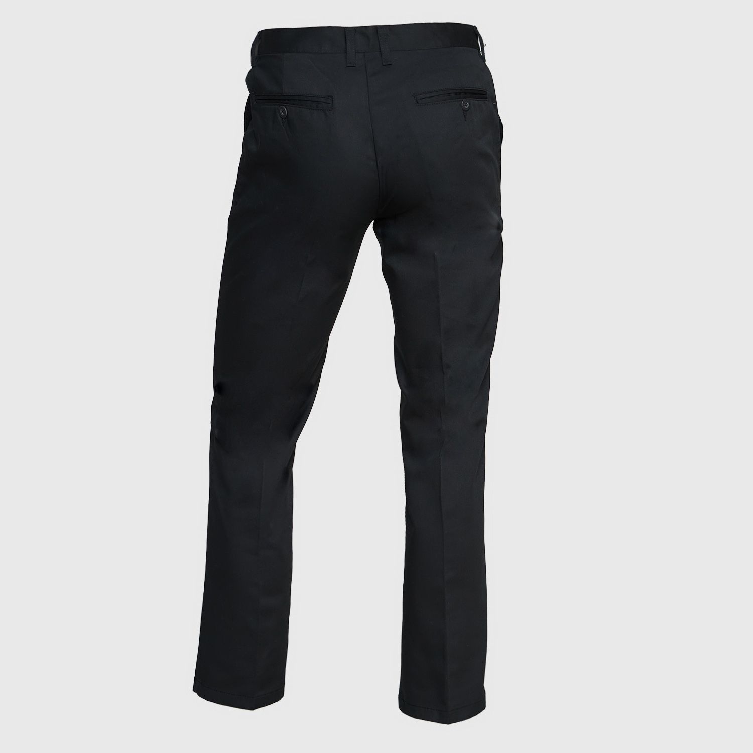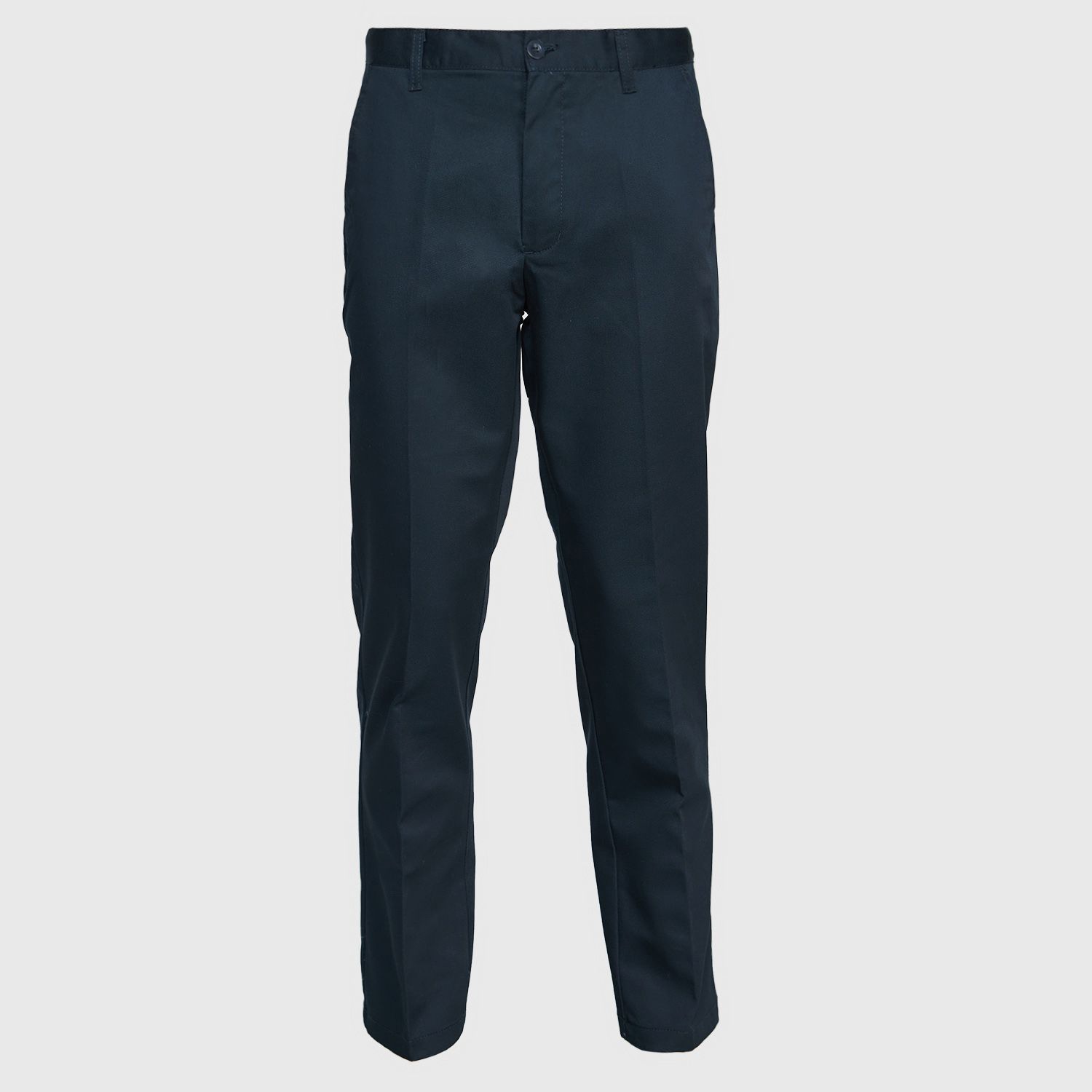 Pantalón formal, frente plano y calce recto. Finas terminaciones interiores. Costuras reforzadas. Material testeado – solidez al color (certificado disponible).