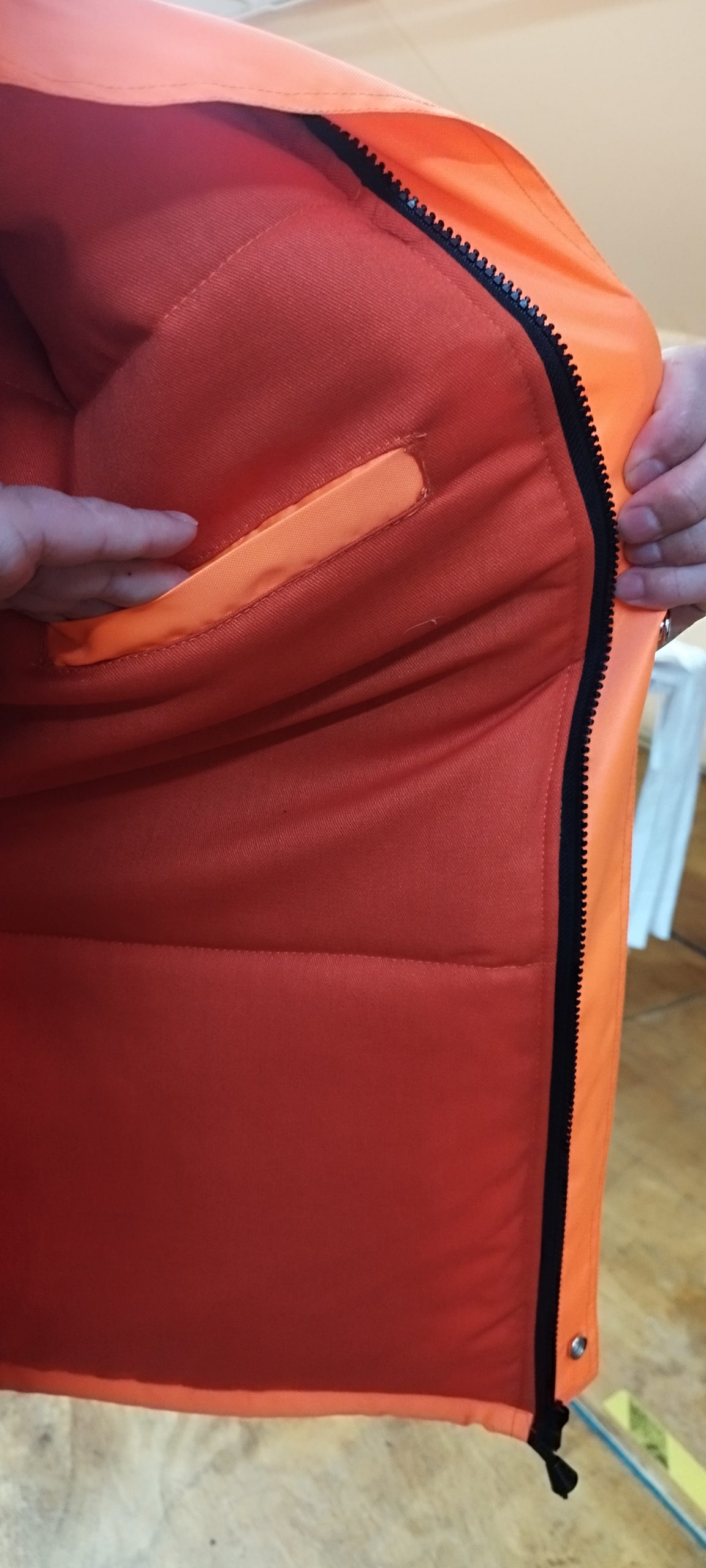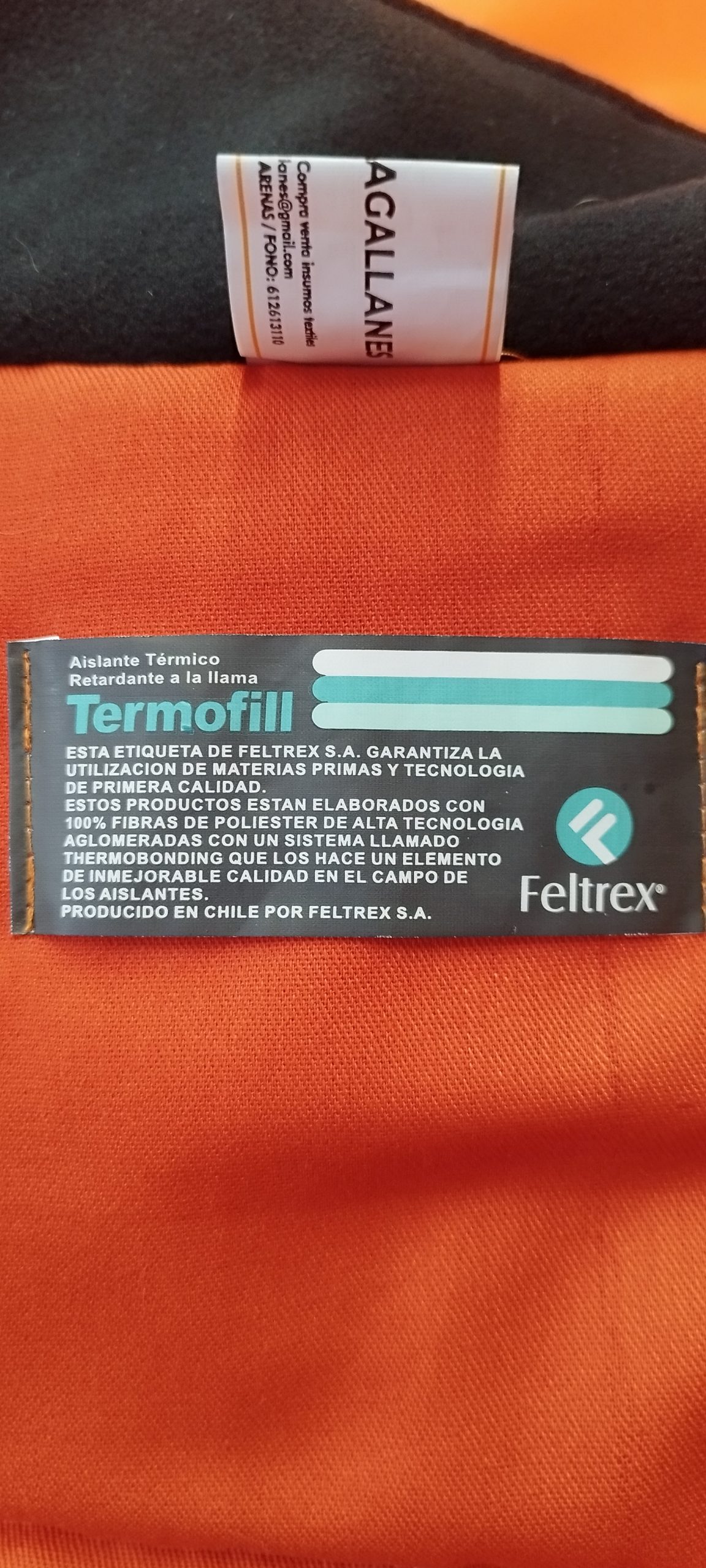 Parka termica confeccion propia color fluor naranjo.